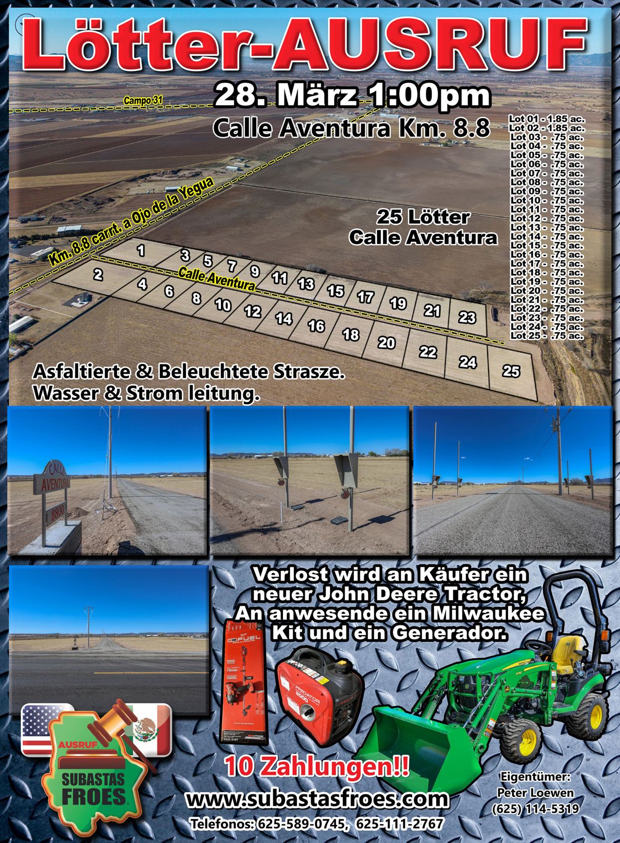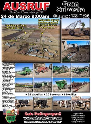 24 de Marzo 9:00am Subasta Timoteo Friesen Campo 75 # 26