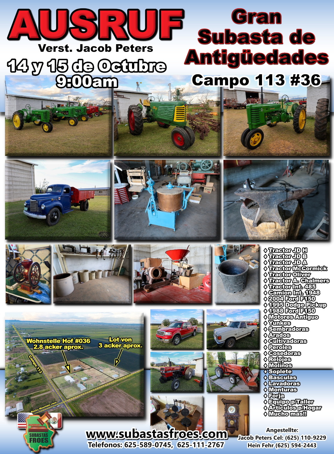 Subasta de Antiguedades 14 y 15 de Octubre 9:00am Campo 113 #036