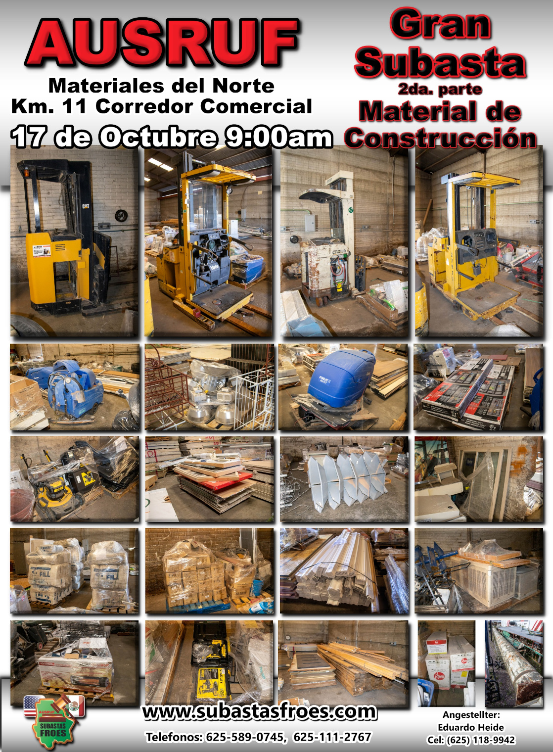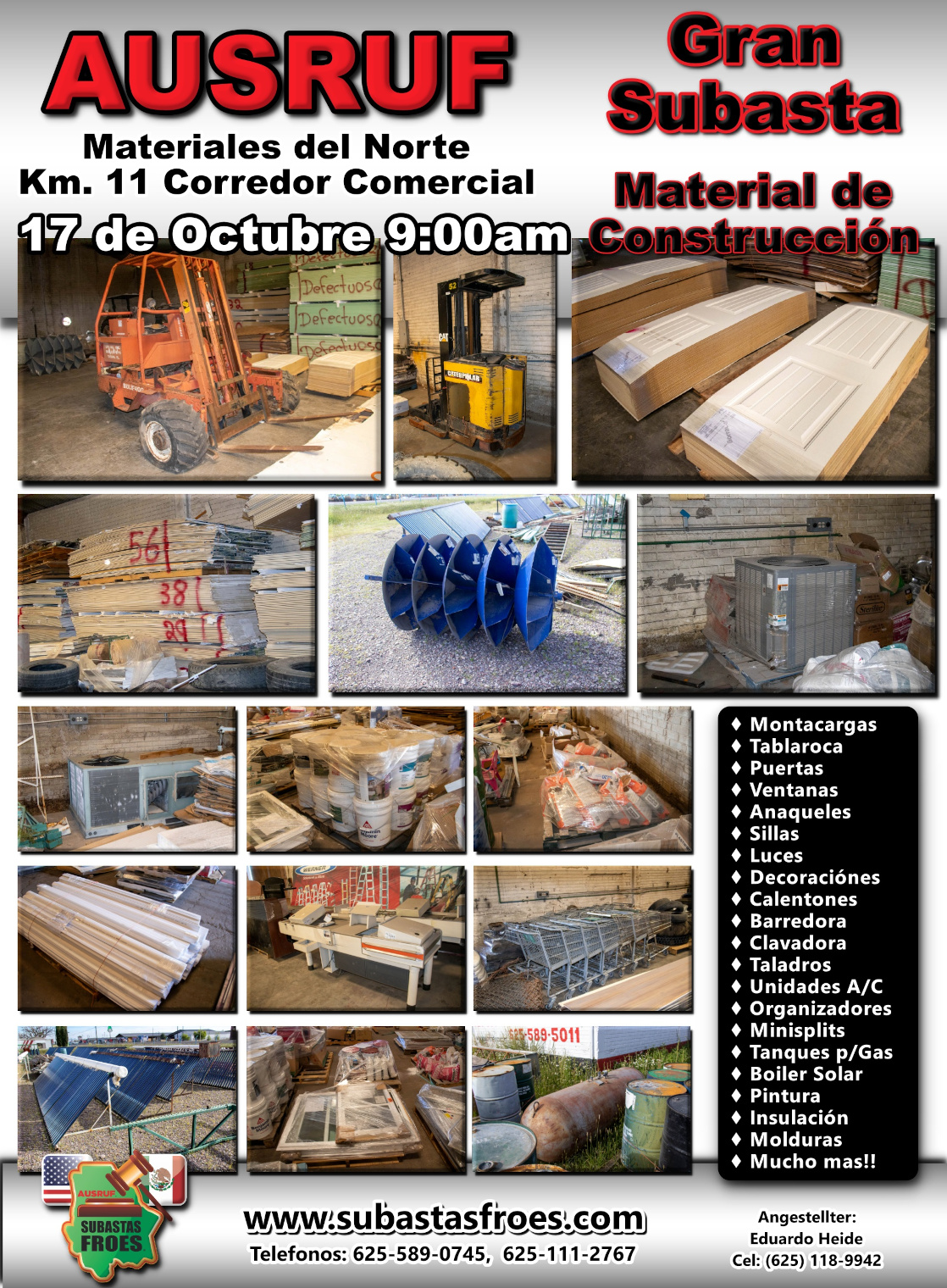 Subasta de Material para Construccion 17 de Octubre 9:00am Materiales del Norte Km. 11 Corredor Comercial