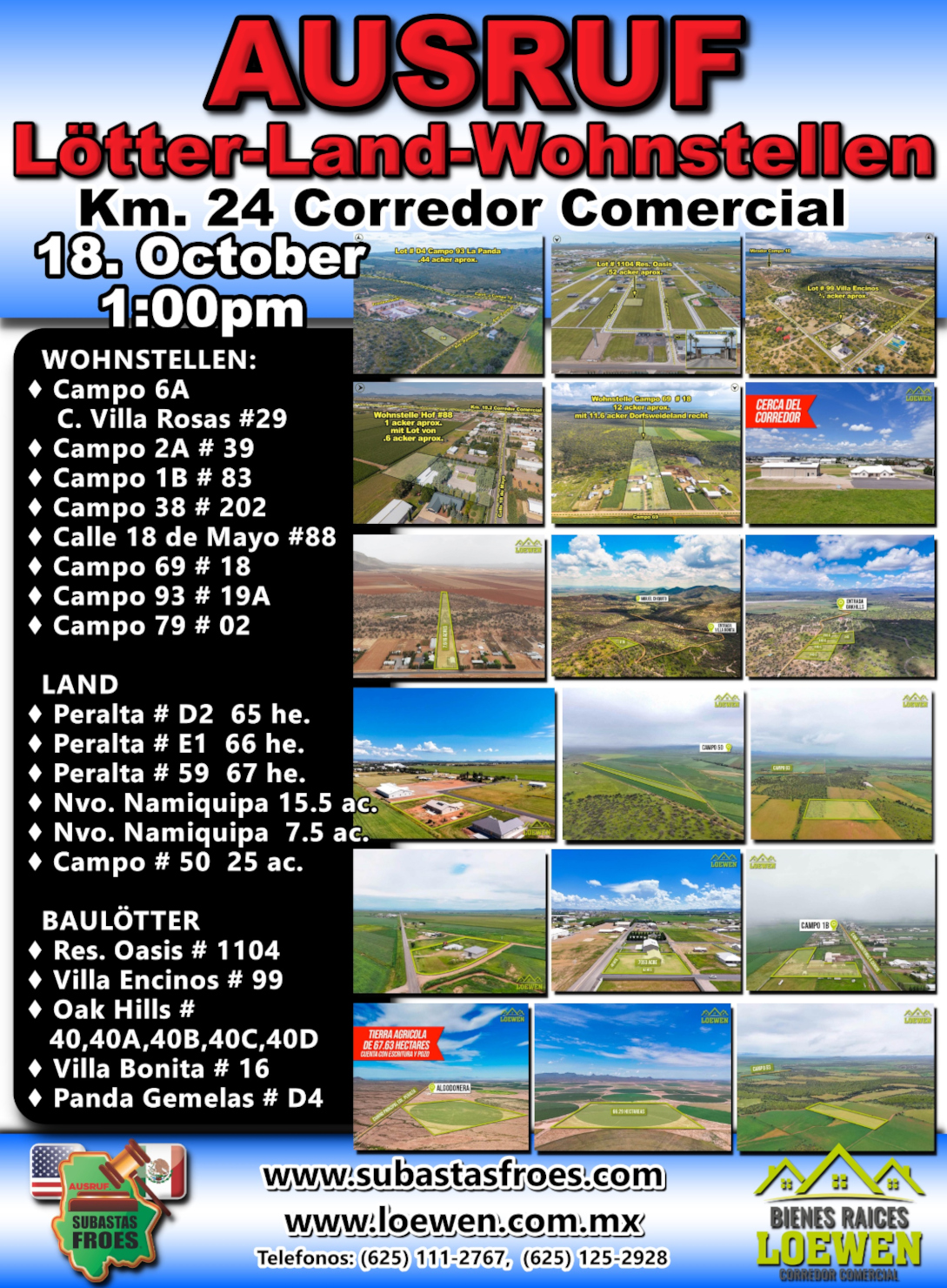 Lötter und Wohnstellen Ausruf 18. October 1:00pm Subastas Froes Km. 24