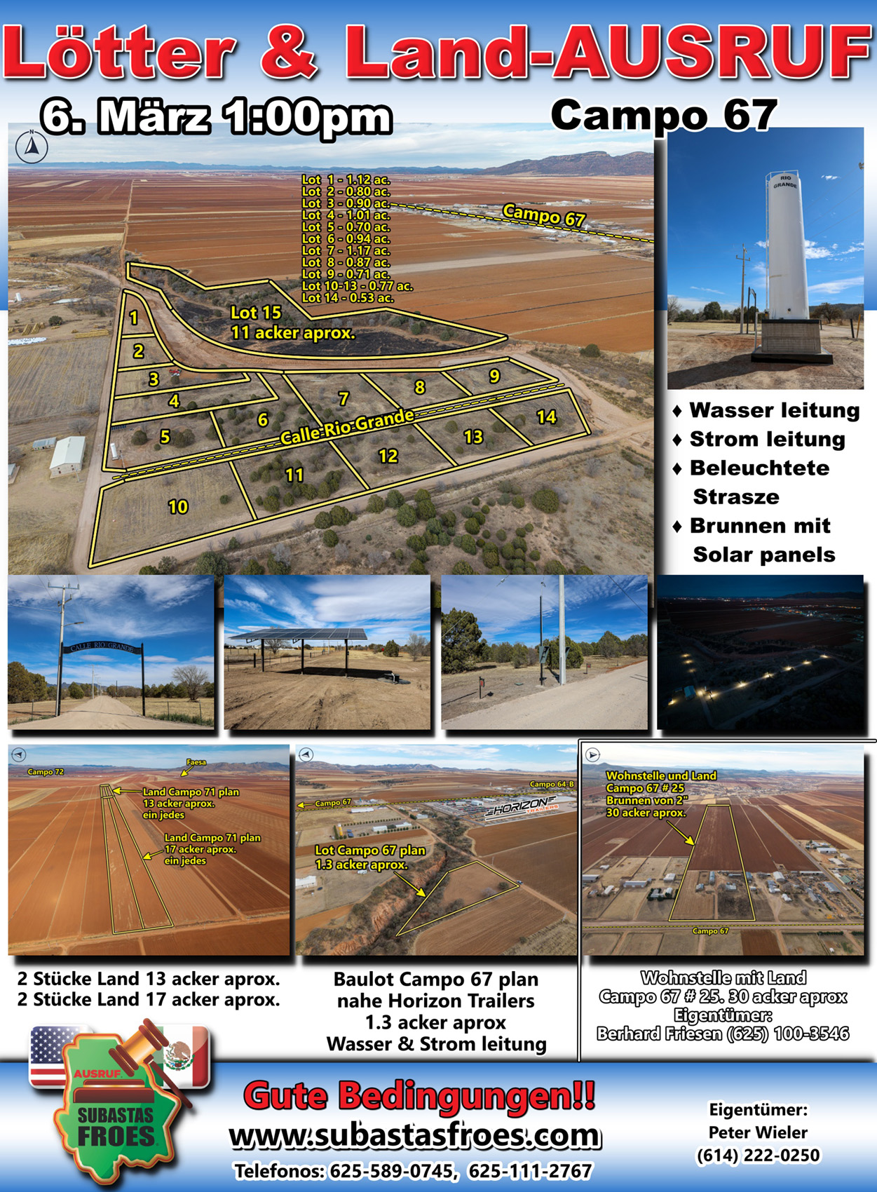 19 de Febrero 9:00am Subasta verst. Bernhard Loewen Campo 8 # 20