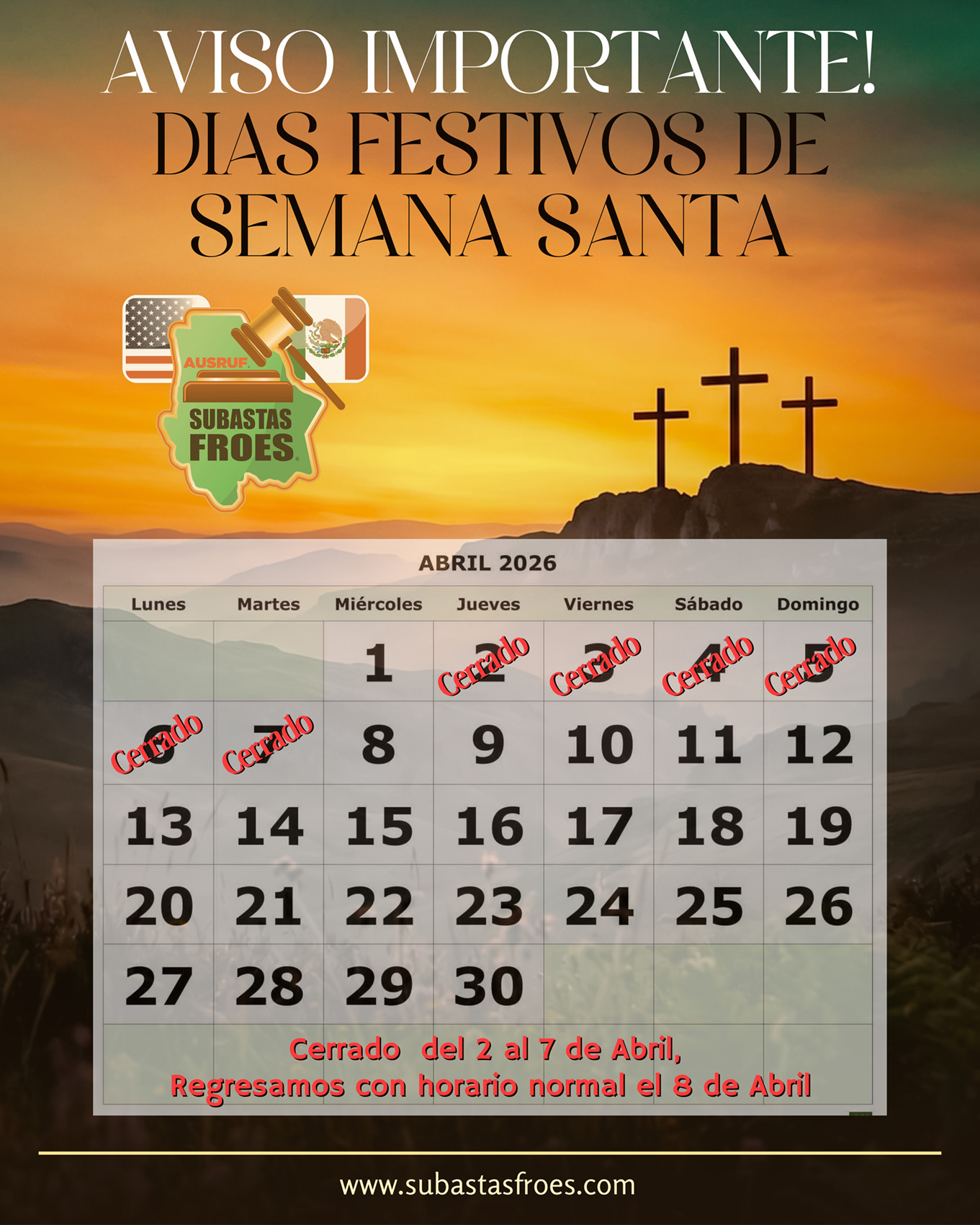 21 al 24 de Abril 9:00am Gran Subasta Km. 24 Corredor Comercial