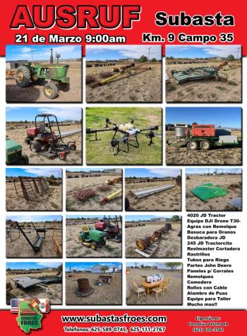 19 de Marzo 9:00am Subasta de Maquinaria Agricola David Fehr Campo 26 # 2605