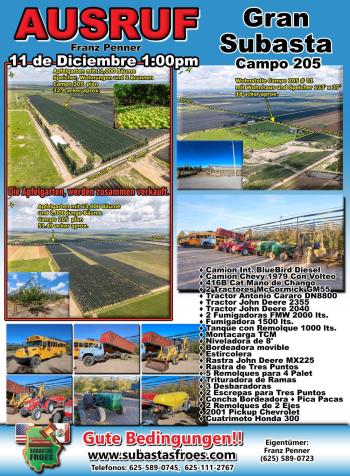 11 de Diciembre 1:00pm Subasta Franz Penner Campo 205