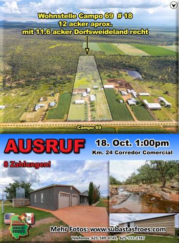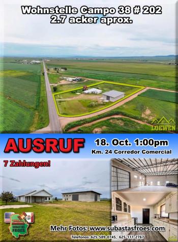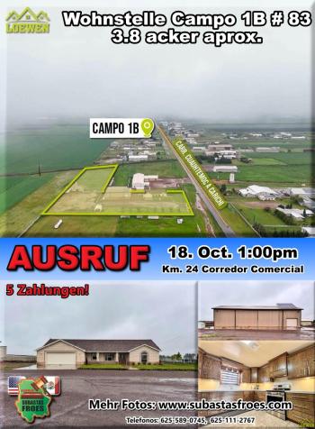 Lötter und Wohnstellen Ausruf 18. October 1:00pm Subastas Froes Km. 24