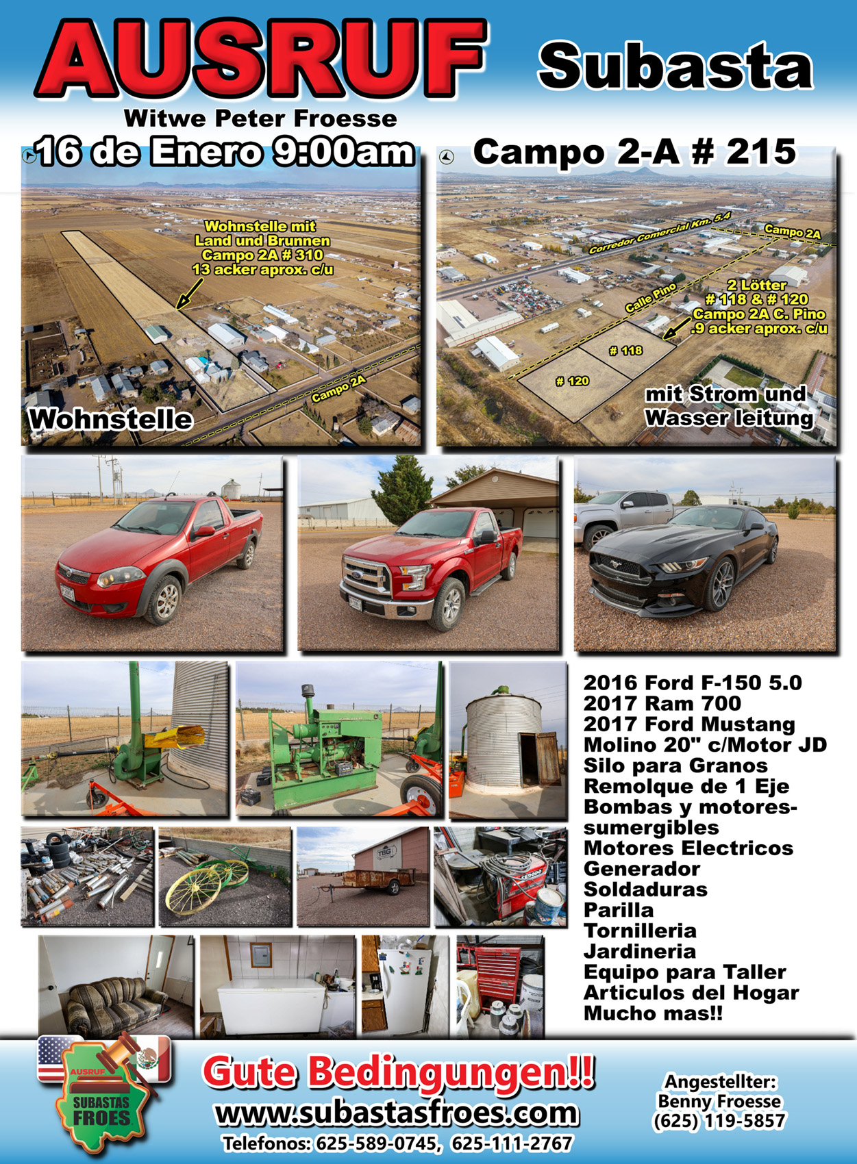 16 de Enero 9:00am Subasta Familia Froese Campo 2-A