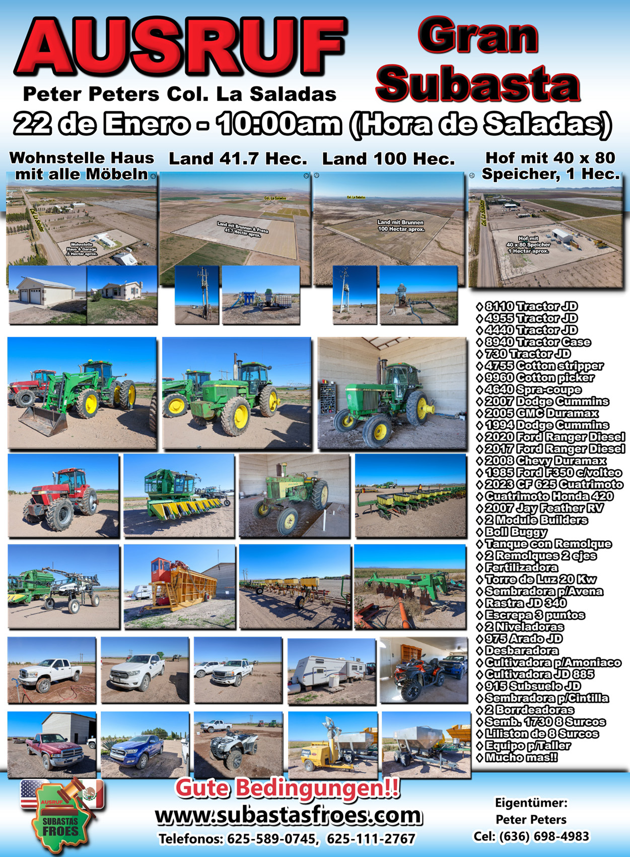 22 de Enero 10:00am (Hora de Col. Saladas) Subasta Peter Peters Col. La Saladas