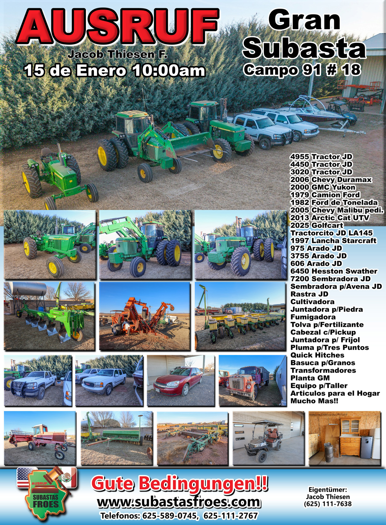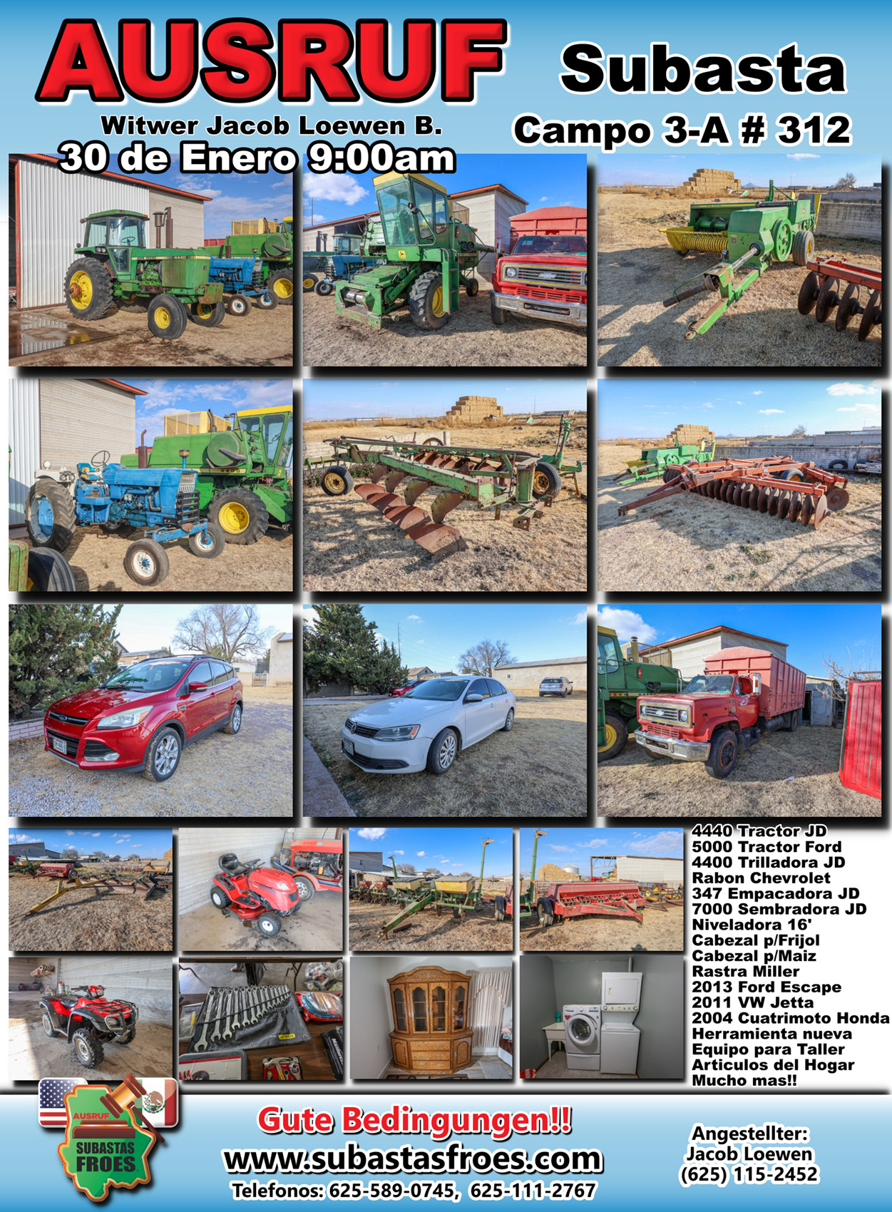 30 de Enero 9:00am Subasta Jacob Loewen Campo 3-A
