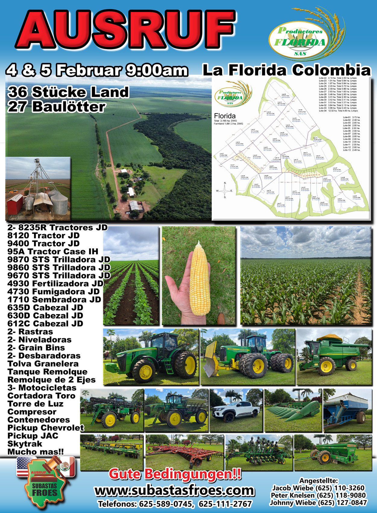 4 und 5 Februar 9:00am Land & Gerätschaft Ausruf Rancho La Florida Colombia