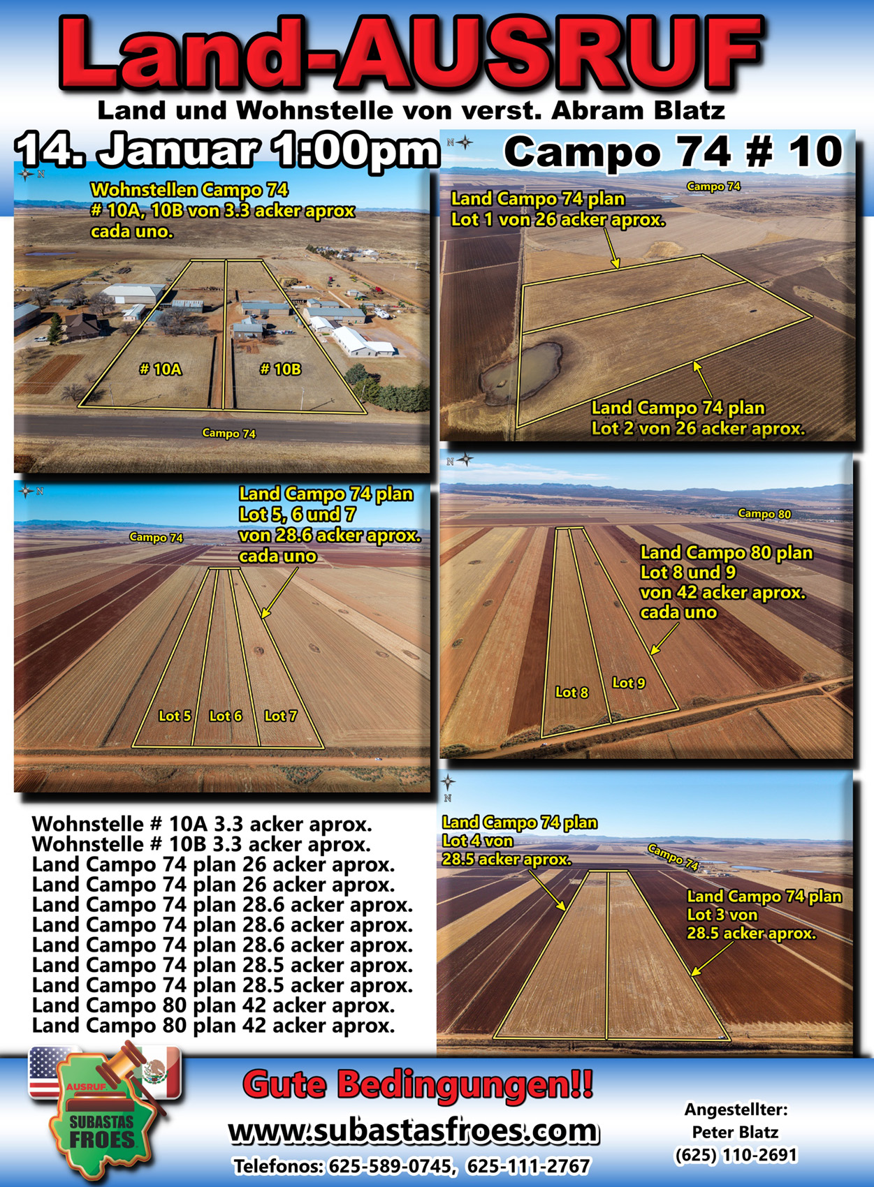 14. Januar 1:00pm Land-Ausruf Verst. Abram Blatz Campo 74 # 10