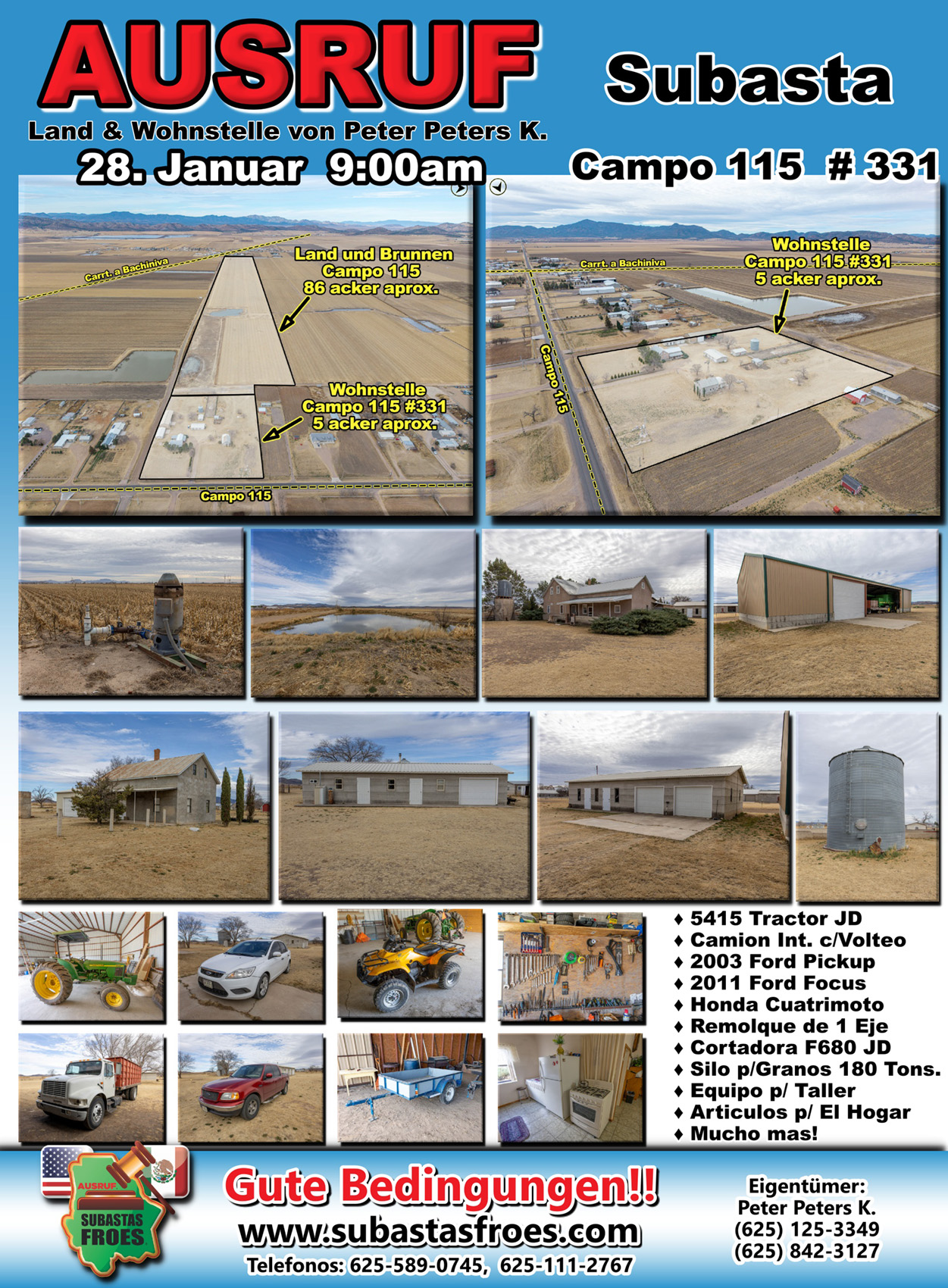 28 Januar 9:00am Ausruf Wohnstelle & Land Peter Peters Krahn Campo 115 Hof # 331